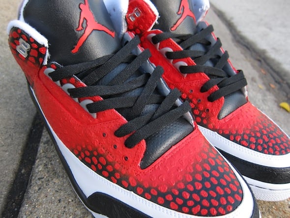 This unorthodox custom was hand painted and features fine detailing on the blackened elephant print, black midsoles, black tongues, and red Jumpman logos for the unusual but appealing twist. There are no limits as to what shape or form custom sneakers can take these days and El Cappy proves just that with his latest hybrid pair. Check out more images (by Rick Williams) below and give us your take on the Air Jordan III x Nike Zoom Kobe VI All Star.