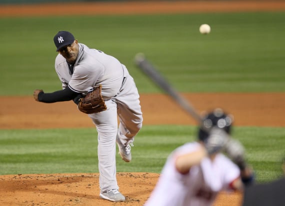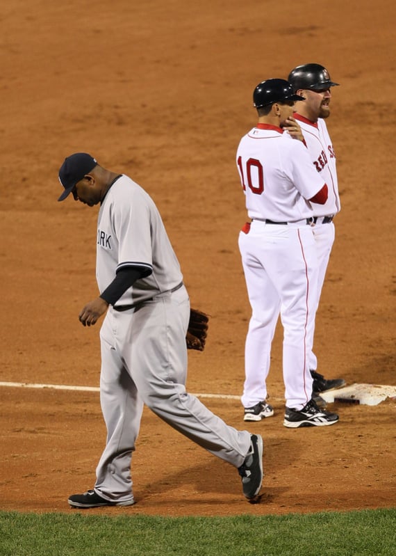 CC Sabathia is no new name to Air Jordan player exclusive cleats, considering as though he unveiled the Air Jordan Force Fusion V (5) Player Exclusive Cleats last year. On Opening Night at Fenway Park this year, CC Sabathia decided to rock a pair of Air Jordan XI (11) cleats in the first two innings, but then changed into the Air Jordan IV (4) cleats for the fourth and fifth innings. The AJ 11 hosted a clean colorway extremely similar to the ever-popular “Cool Grey” Air Jordan 11, while the AJ 4 hosted a black upper with white accents on the midsole, netting, wings, and lace eyelets. It should be quite interesting to keep an eye on CC Sabathia throughout the MLB season, and periodically check out the eye candy on his feet.