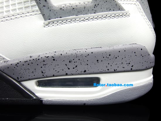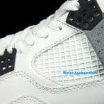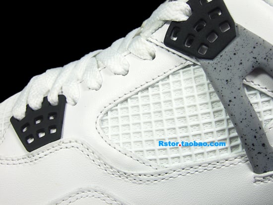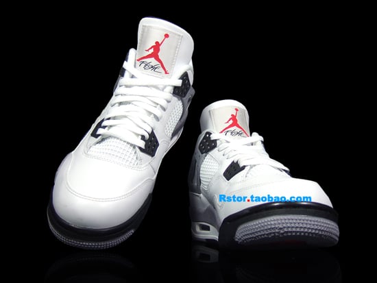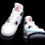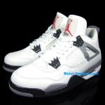 Here we have a first look at the Menโs size Air Jordan Retro 4 White/Cement 2012 in a few angles. Other than the Nike Air replacement on the heel, everything looks to be on point.