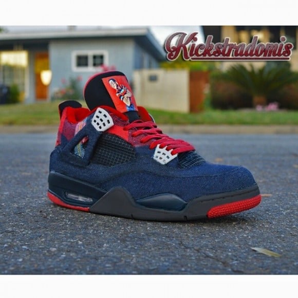 Steve Urkel is one of television’s most notorious sitcom characters, with his endless social faux pas and failed attempts with the ladies. But don’t feel too bad for Urkel, he’s got his own pair of custom kicks, courtesy of Artistic Soles team member, Kickstradomis. The Air Jordan IV (4) “Urkel” customs by Kickstradomis puts denim and red plaid together on the uppers, and further red accenting throughout the whole shoe. The majority of the uppers are made of a dark indigo denim, with a red and black plaid sitting on the tops of the shoe, on the rear. Red continues to show up on the lacing on parts of the black outsole. A custom portrait of Urkel is stitched on the tongues where Jordan branding is usually located, while the Jumpman on the heel guards of the shoe has been altered to resemble the suspender-rocking nerd. These Kickstradomis customs pack a punch of nostalgia for all of those who grew up in the ’90s! These shoes would make you walk in a room like “Did I do thaaaat?” More pics below!