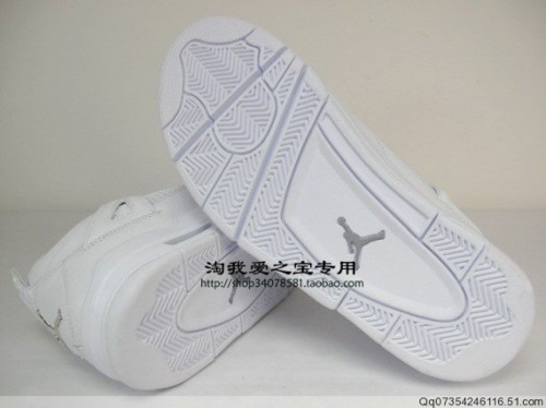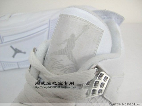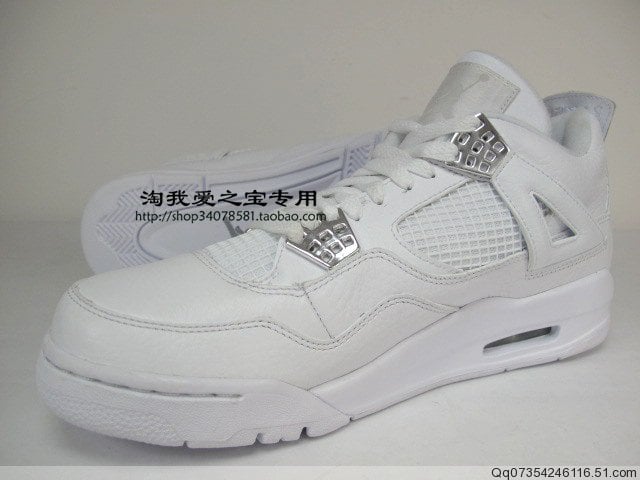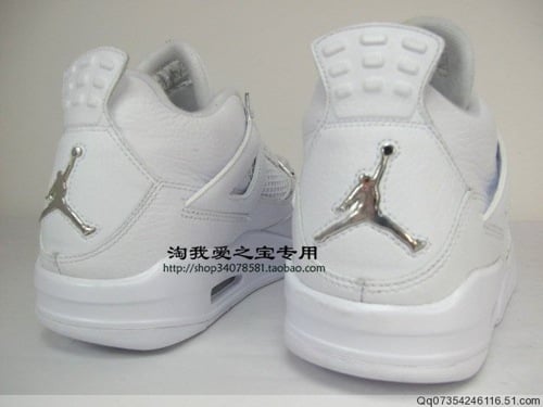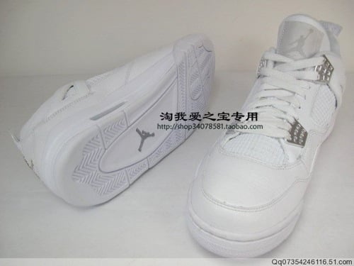 The more looks we get at different Air Jordan signature series silhouettes in the Silver Anniversary colorway, the more Jordanheads’ hopes rise in anticipation of what many hope is an actual release of the entire Silver Anniversary collection. After seeing the very popular Air Jordan III done-up in all-white, many eagerly awaited images of the Air Jordan IV- here they are. Like the aforementioned Air Jordan III Silver Anniversary, this AJ IV reads “Pure $,” but this time on the inside of the heel tab. And slight silver accents can also be spotted on the four extra shoelaces holder that come on every IV. So after looking at the two- which Silver Anniversary sneaker would you say looks better- the AJ III or IV?