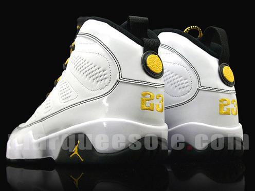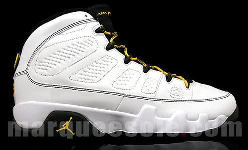 Throughout the first third of 2010, we were informed of and got a look at at least three new colorways of the Air Jordan IX besides Silver Anniversary: BIN 23, University Blue, and Citrus. Now we can show you yet another Air Jordan IX, this time in a white/citrus-deep forest colorway. This shoe comes with a predominantly white upper and deep forest on the stitching, sole, heel, and shoe laces area. Touches of citrus come by way of the Jumpman logo, heel logo, and shoe laces that read JORDAN in black. No word yet on a release date, so enjoy these first pictures for the time being.