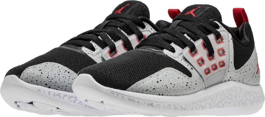 The new Air Jordan Lunar Grind features a textile upper along with a a flexible midsole. Dressed in a Black, Tech Grey and Fire Red color combination. While Black covers the base paired with Red accents, Cement print lands on the overlays.