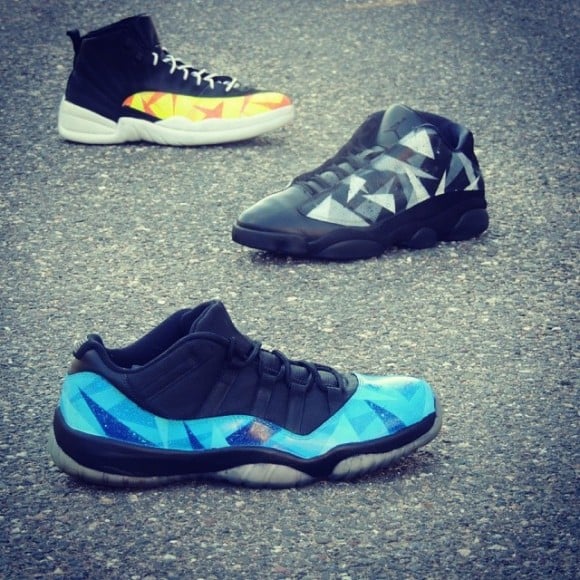 Which of these “Prism Pack” custom Air Jordans from Kicks Galore are you feeling most? Those AJ11s are ill, they have an Air Jordan 12 Gamma Blue feel to them! More pics below!