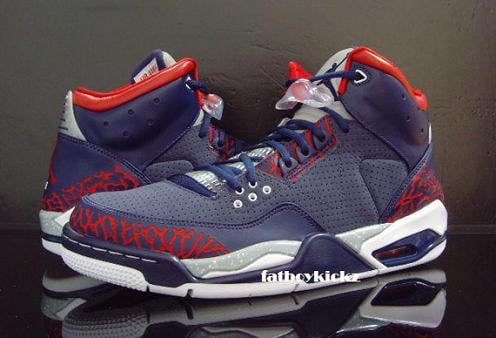 Just because Kobe Bryant recently finished getting his hand on his second NBA championship in a row doesn’t mean he doesn’t want some more. The Nike Zoom Kobe V “USA Basketball” that is set to release in September matches perfectly with the national team’s basketball jerseys, which will be worn when the team tries to won gold at the FIBA World Championships. Now we have a look at what is supposedly a Fiba World Championships version of the Air Jordan Rare Air. With a perforated upper and red cement on a predominantly blue base, this could be quite the attention-grabber if/when any members of the US national team wear this Air Jordan Rare Air during play.