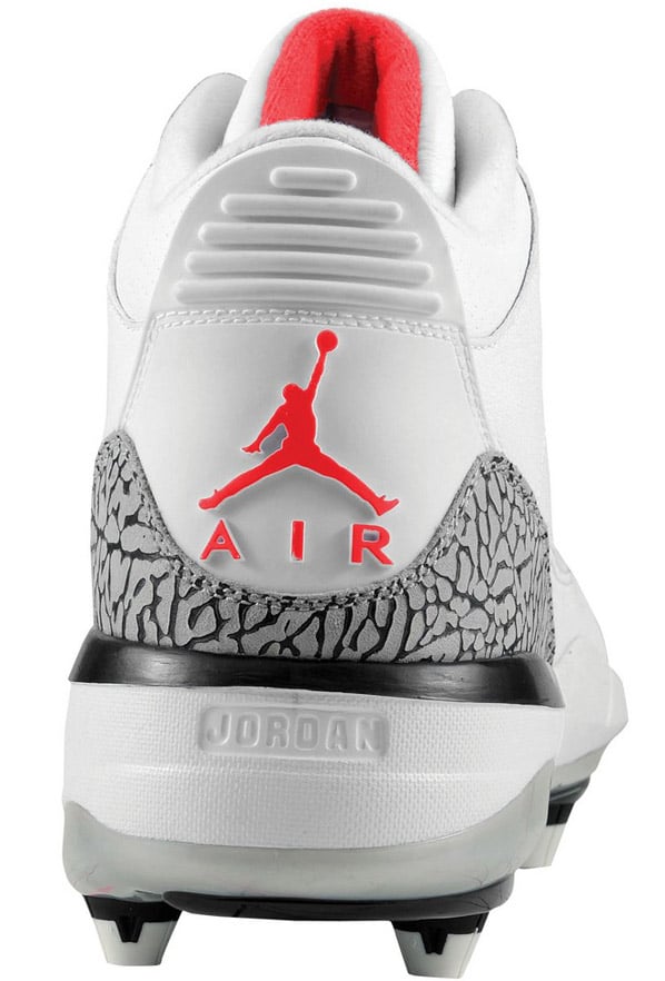 I know we have some athletes that play football that love Jordan Brand. For those of you that need a new pair of cleats, Jordan Brand has just released the Air Jordan Retro 3 (III) Cleat D in White / Fire Red – Cement.