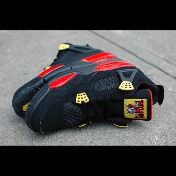 Coming straight out of Pittsburgh, the city of orgin for the Taylor Gang movement, led by none other than Wiz Khalifa, is a fellow Pittsburgh resident, Hippie Neal, whose created some sick customs attributed to Taylor Gang! The Air Jordan Retro 4 ‘Taylor Gang’ are mostly black, with accents of red and yellow. The midsole bears a lot of the red incorporated with these shoes, with further usage appearing on the tongue lining and rear Jumpman logo. Yellow makes its contribution with the lacing hardware, and the customized tongue tags, that read “TAYLOR$,” created by the one and only Herb Juice. Get a full, well-rounded peek at the sneakers down below!