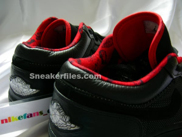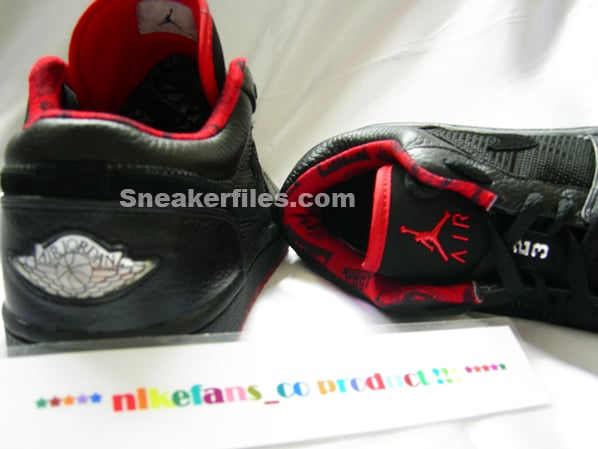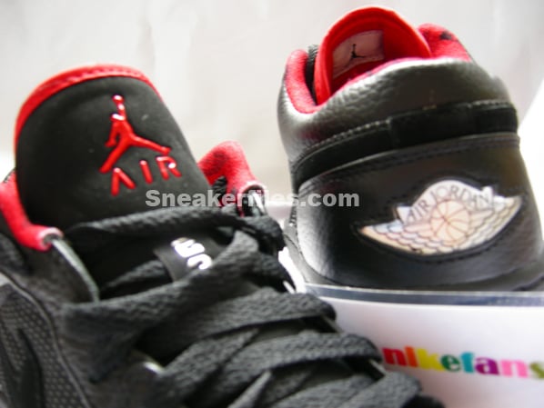We have another sneak peak at a pair of Air Jordan Retro I Low Black/Red. Inspiration from this Jordan I Low is taken from the very popular Air Jordan XIII Black/Red. Some nice detail on the upper insole you can see print of Michael Jordan’s head, the Jumpman logo along with the old Basketball Wings logo, there are a few more things but it is hard to tell what they are.