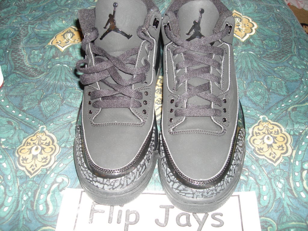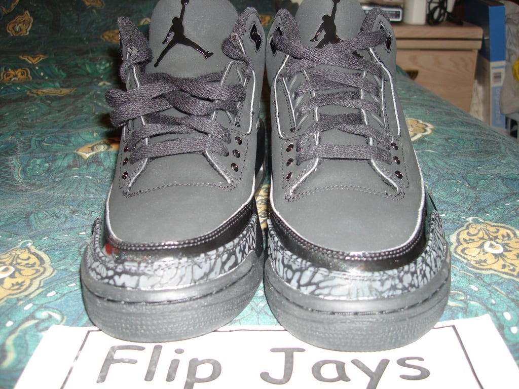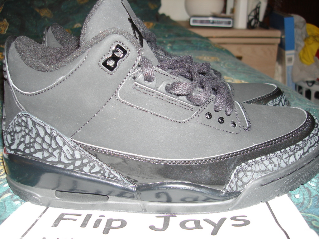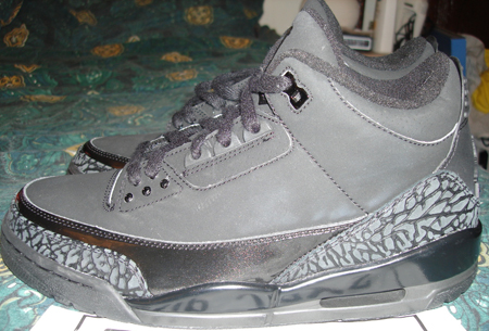 We recently showed you some Air Jordan Retro I from Flipjays, now here are the Black Cat Retro III releasing in 2007. Some people like them, but some think this they are really plain. But one thing you can not deny, they will match with a lot of things. Thanks to Flipjays of the Sneakerfiles Forum.