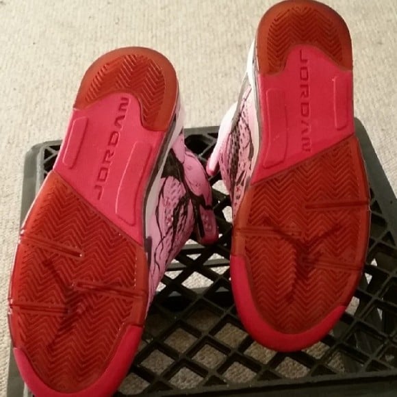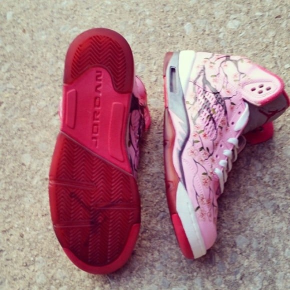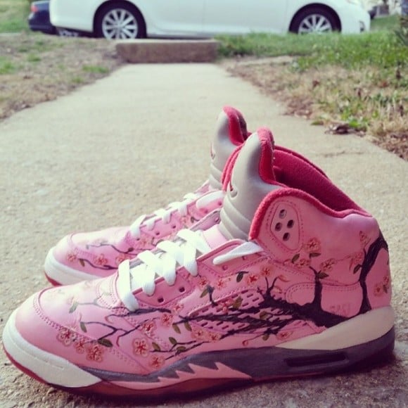 The floral trend is continuing to flourish with footwear as we dive deeper into the spring season. A number of customs and general release kicks have latched on to the all over flower print theme, like the KD VI (6) “Aunt Pearl” shoes, and now up and coming sneaker artist, Sydney4rmPhilly, is trying her hand with floral print. The Air Jordan V (5) “Cherry Blossom” customs by Sydney4rmPhilly feature a pink leather upper with a portrait of a cherry blossom tree all over the shoes.ย Keeping the original purple and white midsole, more pink covers the shark teeth, along the outsole. The top of the AJ5s are grey, while pink swallows the lower portion, with matching pink branding up top. These would be some dope kicks for any lady sneakerhead! And I don’t know about you, but I haven’t seen any cherry blossom floral designs yet! Great job, Sydney4rmPhilly!