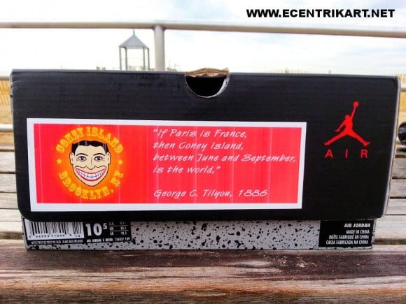 Ecentrik said it was only right for him to do a Coney Island dedication, in his Brooklyn Art Project, and we agree! If you look at close-ups of the details, you can’t even tell these started out as Air Jordan V “Laney” shoes! Visit the Ecentrik Art shop to cop a pair of these, or any other shoes a part of the “Brooklyn Art Project!”
