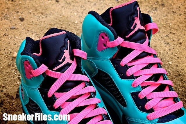 Earlier today we showcased a pair of custom Air Jordan V’s done up in the South Beach colorway.