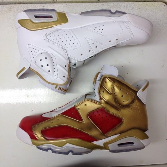 The Air Jordan VI (6) “Niners Nation” customs by Have Air Customs feature the San Francisco Forty-Niners gold and red on the uppers, with white accents. The varsity red takes over the toes, midfoot paneling, and lacing, as well as the branding. Gold attacks the uppers on the overlaying panels on the sides, and mostly dominates the rear. The use of metallic gold continues with the midsole, which is completed by an icy white outsole. Providing a clean-cut contrast to the darker tones present all over, Have Air Customs kept the toe caps, tongue, ankle tabs, and parts of the midsole white.
