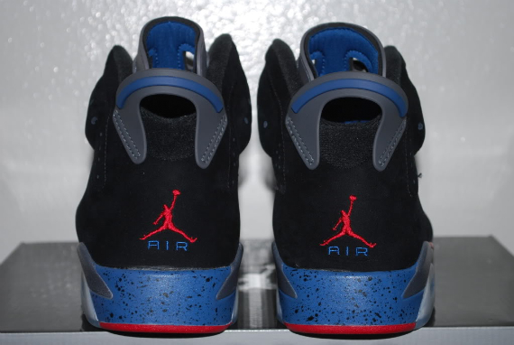 We have already showcased a plethora of pictures of the Air Jordan VI (6) “Pistons,” and many of you out there cannot wait to get your hands on a pair. If you are one of those people, we have good news to share. The Detroit Pistons inspired colorway of the AJ 6 has hit your favorite online bidding site. For those of you not familiar with the sneaker, this Air Jordan 6 hosts a black suede and patent leather upper with varsity red, true blue, and light graphite accents. The Air Jordan VI (6) “Pistons” will release at your local retailers on April 17, 2010 for $150, but you can now purchase your pair early on eBay.