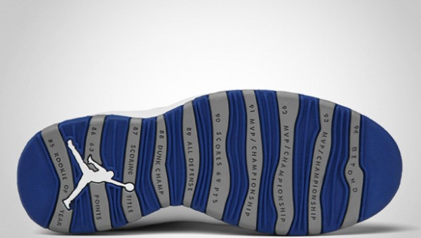 A brand new Air Jordan X colorway, this will also be the first release to utilize mesh around the eyestay and collar. Featuring a predominately white upper, this Air Jordan combines white tumbled and patent leathers with hits of blue on the mesh, checkered lining, laces and outsole while light grey also hits lace loops, heel pull tab, outsole and checkered lining.