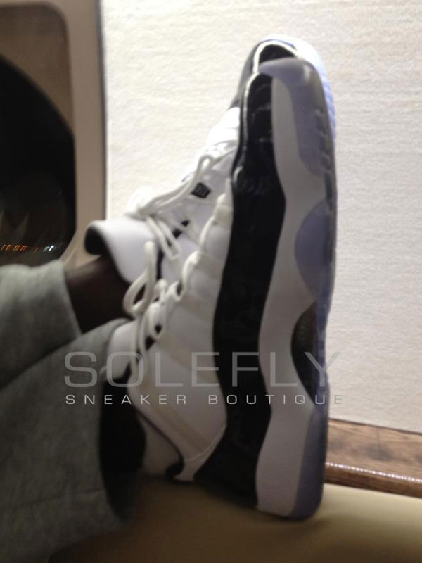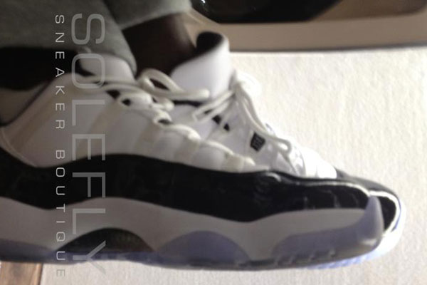 While we all anticipate tonight & tomorrows climactic finale to 2011’s sneaker releases, MJ was spotted wearing a fresh new pair of ‘Concord’ Lows. Replacing the mesh styled uppers with smooth leather, this low top version is just as clean as the mid.