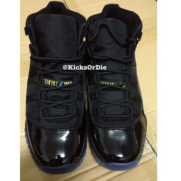 The shoes feature the same all-black upper seen on the “Bred” and “Space Jam” XI’s, but instead of a white midsole, they sit atop a black midsole, giving the shoe a slick appearance. The bright yellow “23” on the heel tab and bright blue Jumpman on the upper pop on the all-black backdrop, helping to liven things up. The “Jumpman Jordan” tag on the tongue is also done in gamma blue and varsity maize, also adding to the unique look of these kicks. The sole of the shoes are an icy blue, with bright blue accents on the front and rear tread portions. Definitely a fresh take on the Air Jordan XI – one of the most iconic and beloved models in the Air Jordan pantheon – this shoe is one that people will either hate or love, often the sign of a great shoe.