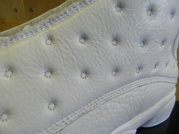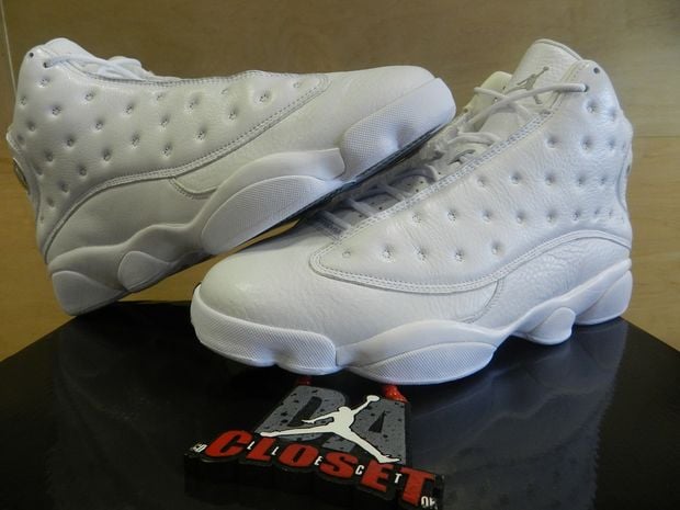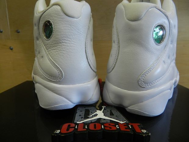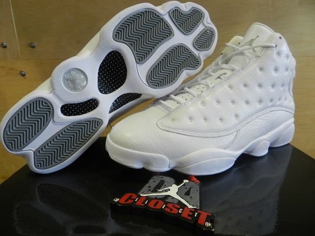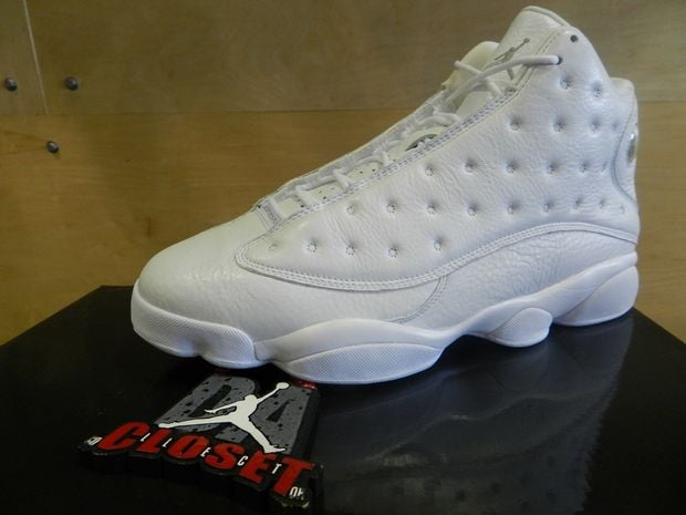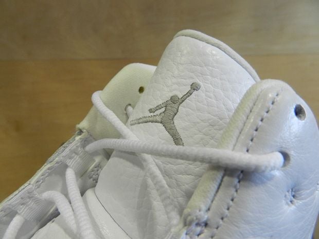 This model comes to us in Jordan Brands discontinued line up of the Silver Anniversary series featuring various Air Jordans in all white and/or metallic silver. This Air Jordan XIII ย features an all white leather upper, Metallic Silver traction pods, Jumpman and the iconic hologram on the upper heal counter.