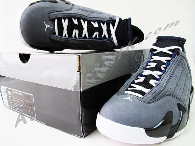 More new images for the Air Jordan XIV Light Graphite/Midnight Navy have surfaced.