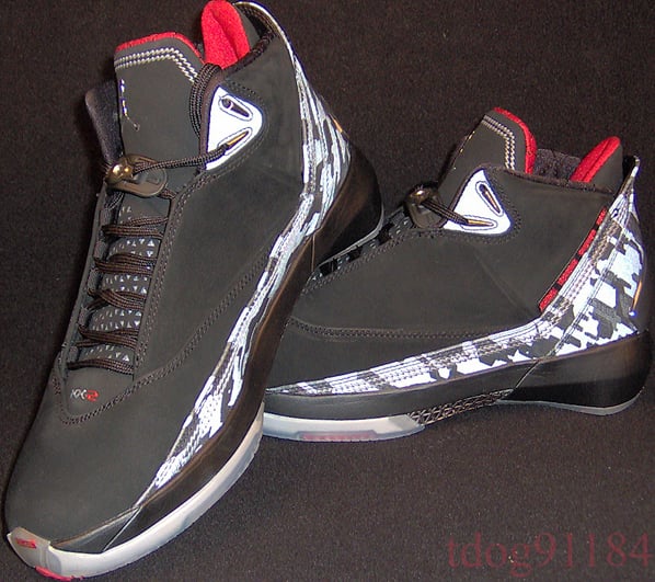 April 7th 2007 marks the day when the Air Jordan XX2 Black/Varsity Red-Metallic Silver release. Here we have the final production model, and I must say they are looking very nice. Retail is $175 so get ready. Via tdog91184.
