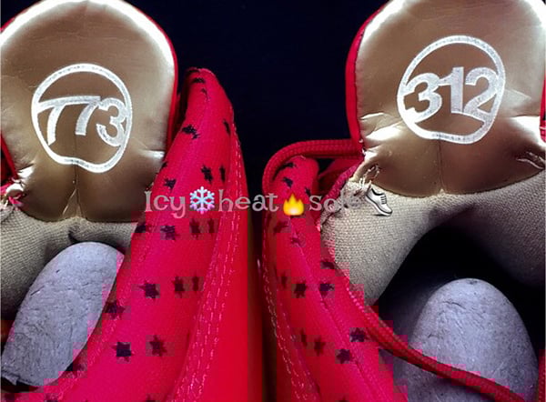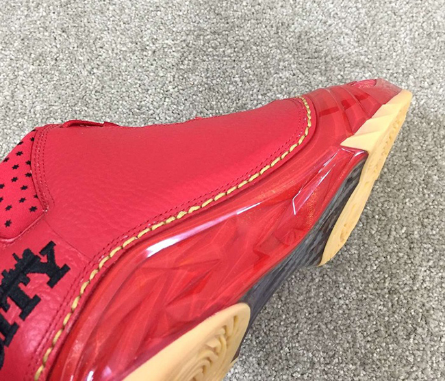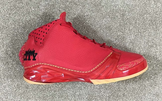 Using a predominate university red and gum yellow color combination. The Chicago Air Jordan XX3 retro comes with an all red upper with leather hitting the paneling. By the heel reads ‘Chi’ and ‘City’ with the Chicago skyline on black. On the outsole and stitching is what Jordan Brand is calling gum yellow. Shown on the inside of the tongue is the numbers ‘773’ and ‘312’ which are both area codes that represent Chicago.