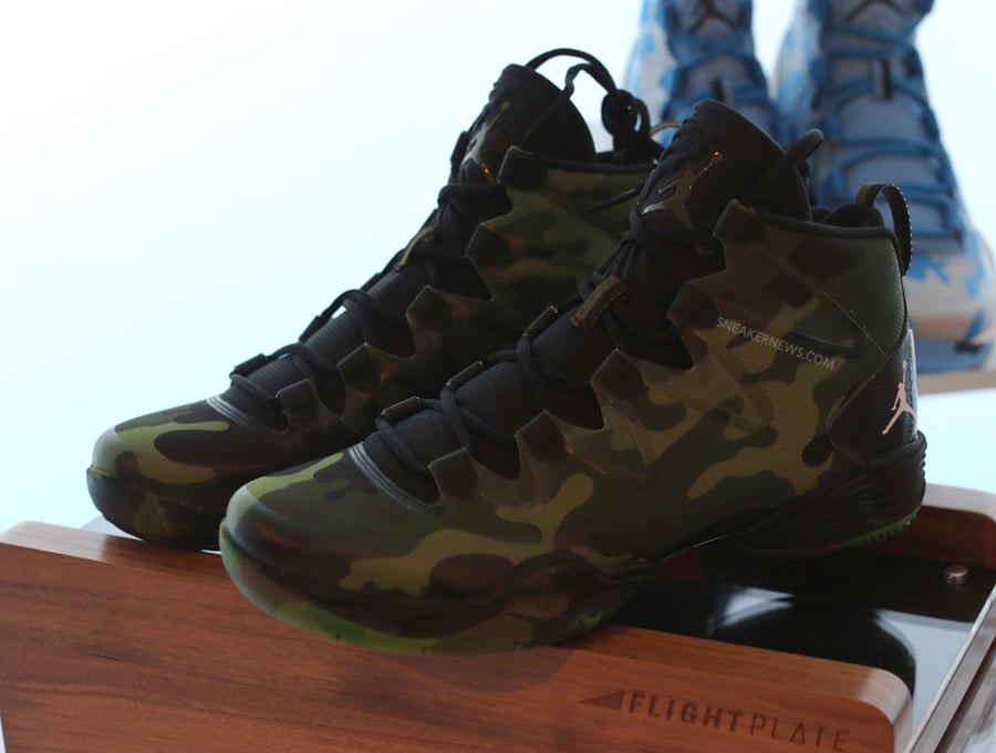 Staying true to its colorful palette, Jordan Brand works in a green camouflage pattern with black carbon fiber and Hyperfuse materials. Complete with a mesh tongue and matching outsole, where does the “Green Camo” rank in your book?