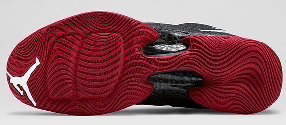 The Bloodline Jordan XX9 uses a unique wave like design on the sides, being the first to use it. It goes to show the Jordan XX9 is a versatile model as far as design and colors go. Coming dressed in mainly black, red and white accents are used throughout.