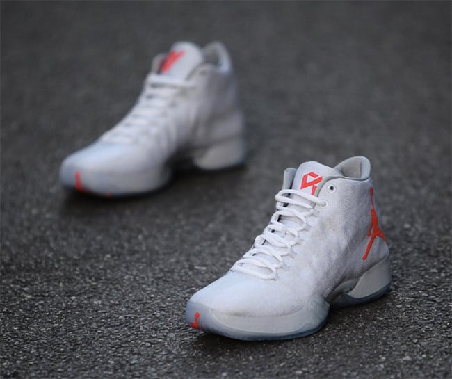 The PE made for Russell Westbrook features a clean white base and midsole with infrared hits seen on the branding. The translucent midsole makes for a nice touch as you can see the number 30 bleeding through to celebrate 30 years of Jordan Brand. The final detail is Russell Westbrook’s logo of ‘RW’ placed on the tongue.