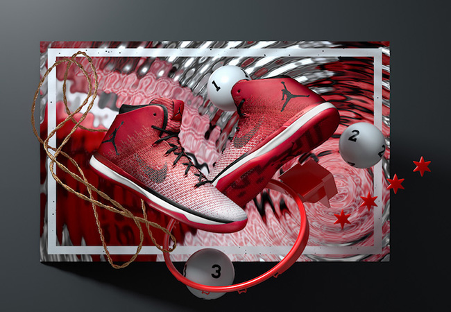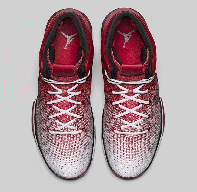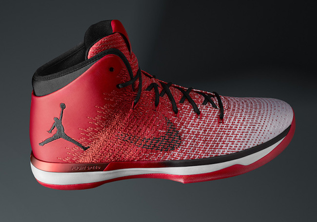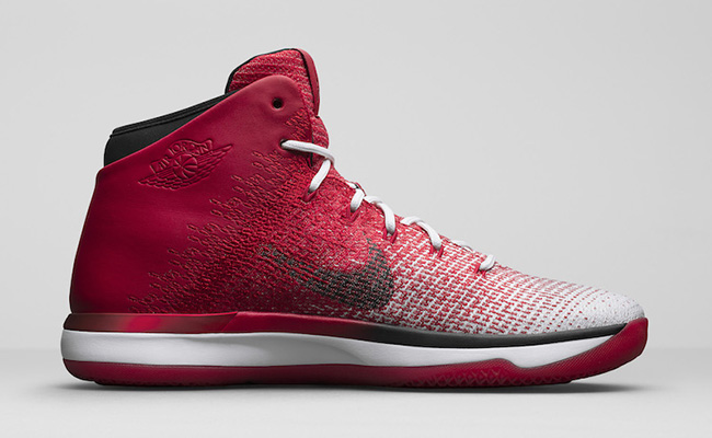 This Air Jordan XXX1 comes in the classic Chicago Bulls color theme of Varsity Red, Black and White. The shade of Red starts out by the heel which slowly gradients to White as we get closer to the toe. Following is Black which hits the Nike Swoosh, Jumpman branding, laces and around the collar. Other highlights include White through the midsole and a Red translucent outsole.