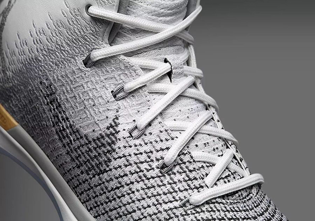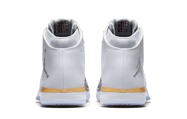 As you can see, this Air Jordan XXX1 features a simple color theme of Black, White, Grey and Gold. On the inside of the tongue, the brand has added Chinese symbols while woodgrain details are also spotted. Other highlights include a translucent outsole and Red Jumpman.