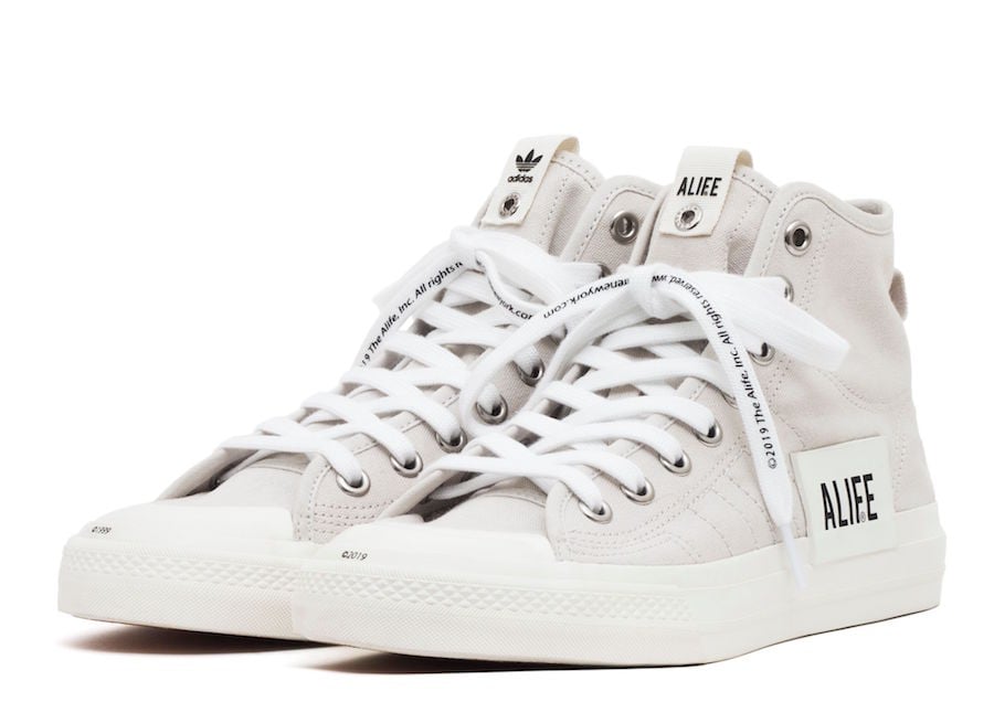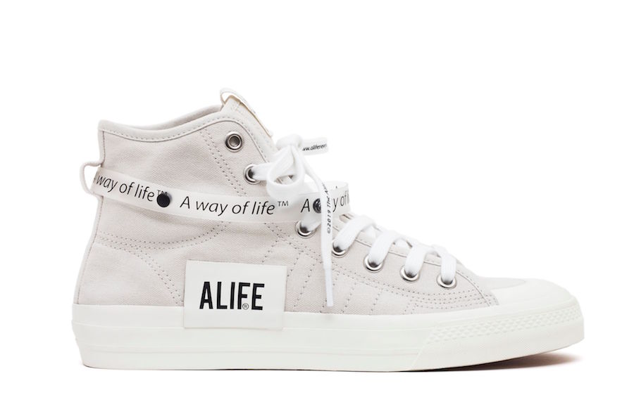 Update 4/30: adidas has announced release details for the Alife Nizza Hi collaboration. It comes with TPU wristbands that you can wear on your wrist or shoes. They will first release at alifenewyork.com on May 1st and in-store at Alife Rivington Club (158 Rivington St., New York, NY 10002). A global release will take place on May 11th.