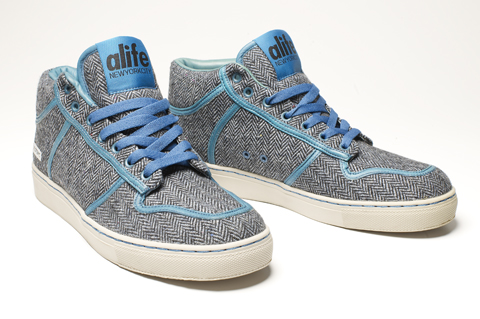 After already reporting a green version of the Tweed Alife Everybody High a few weeks ago, we get a look at the two more Alifes in a similar make-up. Composed of a tweed upper, bold lines compliment blue and gold styles.