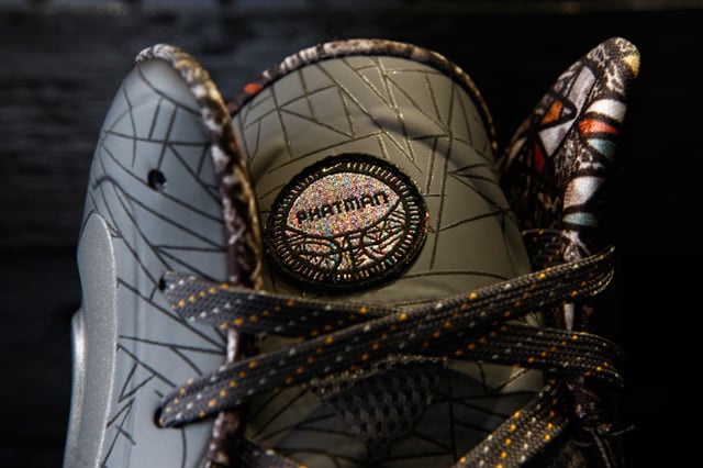 First previewed last week, new detailed images give us a better look at this NOLA Gumbo League-inspired colorway which takes design cues from the “Phatman” himself. Most noticeably, these kicks don his nickname across the tongue.