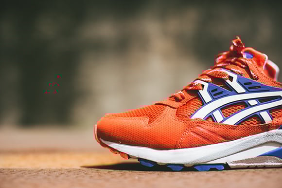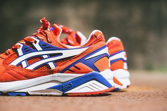 The Asics Gel Kayano Trainer in orange and purple is now available at Sneaker Politics for $120. Other Asics retailers should have the shoes in the next couple of days.