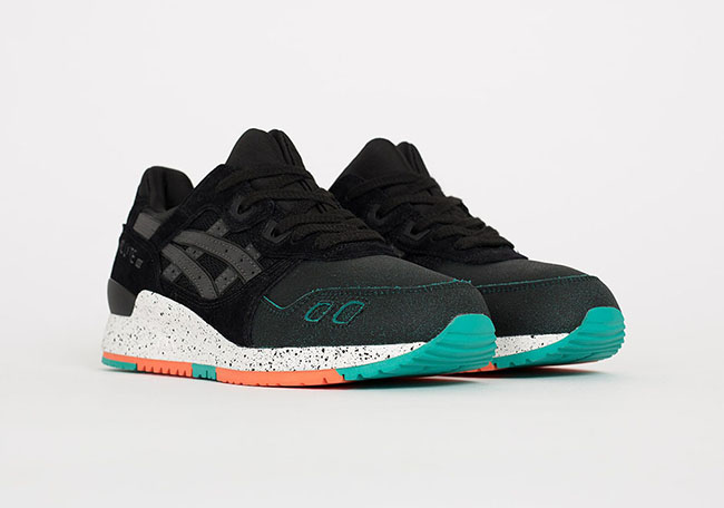 The ‘Miami’ Pack by Asics will feature three pairs and two models. The first is the Gel Lyte III which is then followed by two pairs of the Gel Lyte V. Easily you could call the trio ‘South Beach’ as the neon shades remind us of popular releases that took place years back. The shoes feature a mixture of Black, Turquoise and Coral while black splatter covers the white midsole.