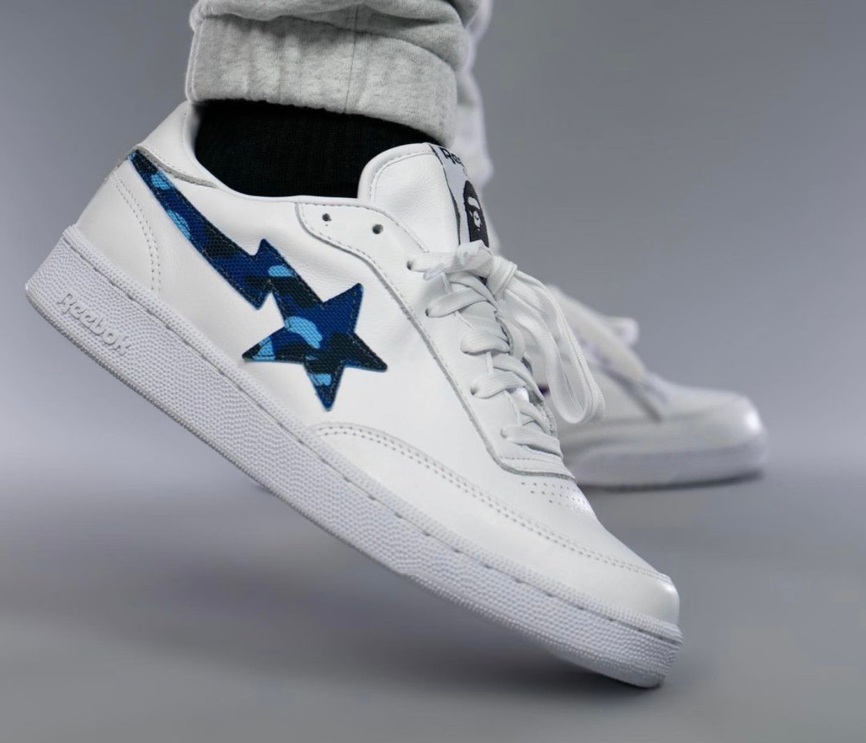 Bape and Reebok will expand on their collaboration in 2021. Over the years, the two have worked together on the Question, Aztrek 96, Instapump Fury, and Electrolyte 97, to name a few. For their new project, they will launch the Club C โBapestaโ iteration.