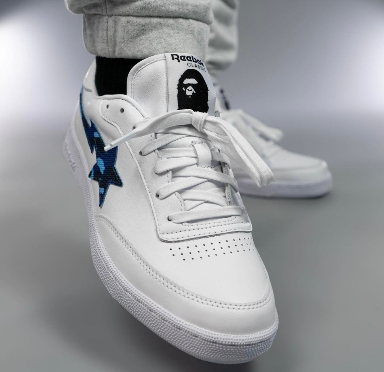 You can expect the Bape x Reebok Club C โBapestaโ to release exclusively at Bape Store Miami. The retail price is $150. Below, you can check out more images of the pair below that will give you a closer look.