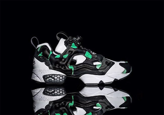 Next we have the Bape Reebok Insta Pump Fury that has already released in early October. Instead of using Camouflage detailing, they feature a clean Black and White theme along with Green highlights. Following is speckled detailing across the midsole while Bape branding hits the heel.
