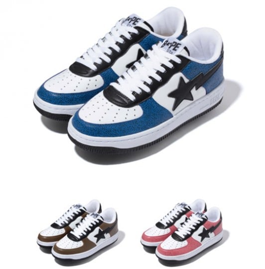 Bape will have a full lineup of releases apart of their Summer 2011 collection, and of course you can grab some of their classic silhouettes. Included in the releases are the Bape Sta, Ultra Skull Sta, Creep Sta, and Mil Low. Also apart of the releases is a Cement Bape Sta with the iconic print around the toe box, and another Bape Sta inspired by varsity jackets.