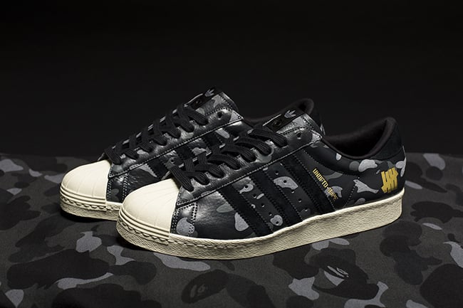 Update: adidas has officially unveiled the Bape x UNDFTD x adidas Superstar 80s. They will first release at UNDFTD and Bape shops. Following on October 10th, more retailers like No.42 Paris, No.74 Berlin and adidas Consortium accounts will release both pairs. See the list of U.S. retailers selling them below.