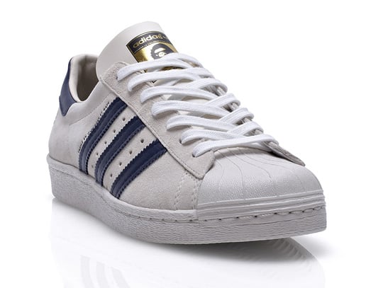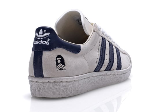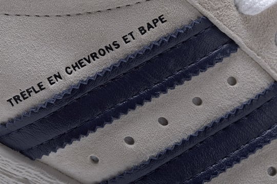 Part of this collection, you’ll see the colorway that we’ve previewed here in a soft suede, white upper, Navy Blue leather stripes and accents, BAPE ‘camo’ insole and the famouse Bathing Ape logo embossed on the heel and on the tongue. Snatch these up, we’re assuming, in very limited pairs at select adidas Originals or BAPE outlets when it drops on August 13, 2011.