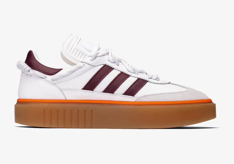 Featuring a Footwear White, Maroon and Dash Grey color combination. This adidas Sleek Super comes with White leather across the upper while Burgundy leather is applied to the Three Stripes branding. Following we have Grey suede on the overlays across the toe, โIvy Parkโ branding is seen on the foxing and the tongue. Finishing the look is Orange trimming and a thick Gum rubber midsole and outsole.