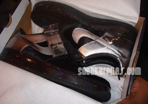 On to the shoes, the Black Friday Nike Air Force 1 DJ Clark Kent’s contain black pony hair on the front part, eyelets, and toe box. Metallic silver is etched at the heel, Nike Swoosh, and heel tab. Finishing off the Black Friday Nike Air Force 1 DJ Clark Kent’s the midsole is a glossy black, which changes colors with the light, just like a salmon. Big thanks to DJ Clark Kent.