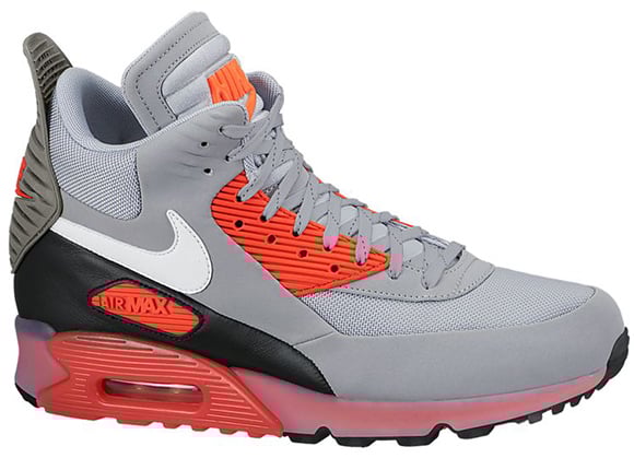 A hybrid of the Air Max 90 known as the sneakerboot is coming back in the popular infrared and wolf grey colors.