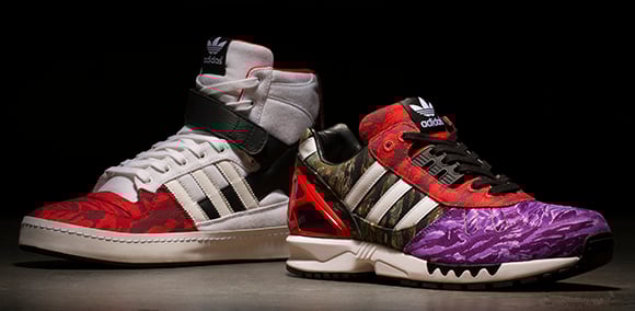 Both the Forum Hi and ZX 7000 uses vibrant camouflage print while using various colors to express the brands creative side.