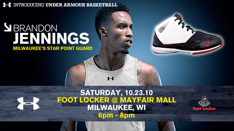 Some of our readers may have been among the lucky few to have visited the Miami Dadeland Mall for the grand opening of their new House of Hoops location this past weekend. Some of you may have even been able to meet and greet Lebron himself. Well, now it’s Milwaukee’s turn to catch a glimpse of another up-and-coming NBA athlete. This Saturday, October 23rd, Brandon Jennings of the Milwaukee Bucks will stop by the Mayfair Mall Foot Locker in Milwaukee from 6 to 8 in the evening. Stop by for a chance at a signature from and to meet the point guard.