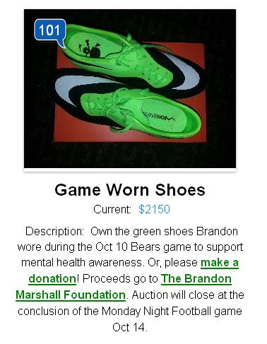 Determined and willing to do whatever it takes, Brandon Marshall falls in line with several other athletes who’ve done good deeds in support of other causes. Up for auction now, you can try you luck at the game-worn cleats as they are now available online at buybrandonsshoes.com.