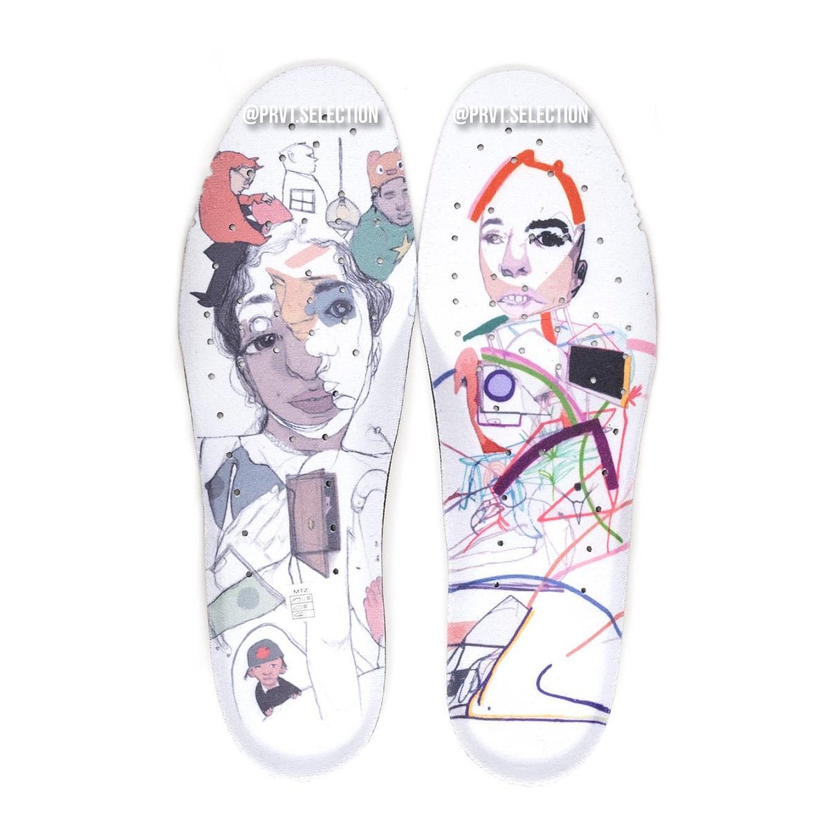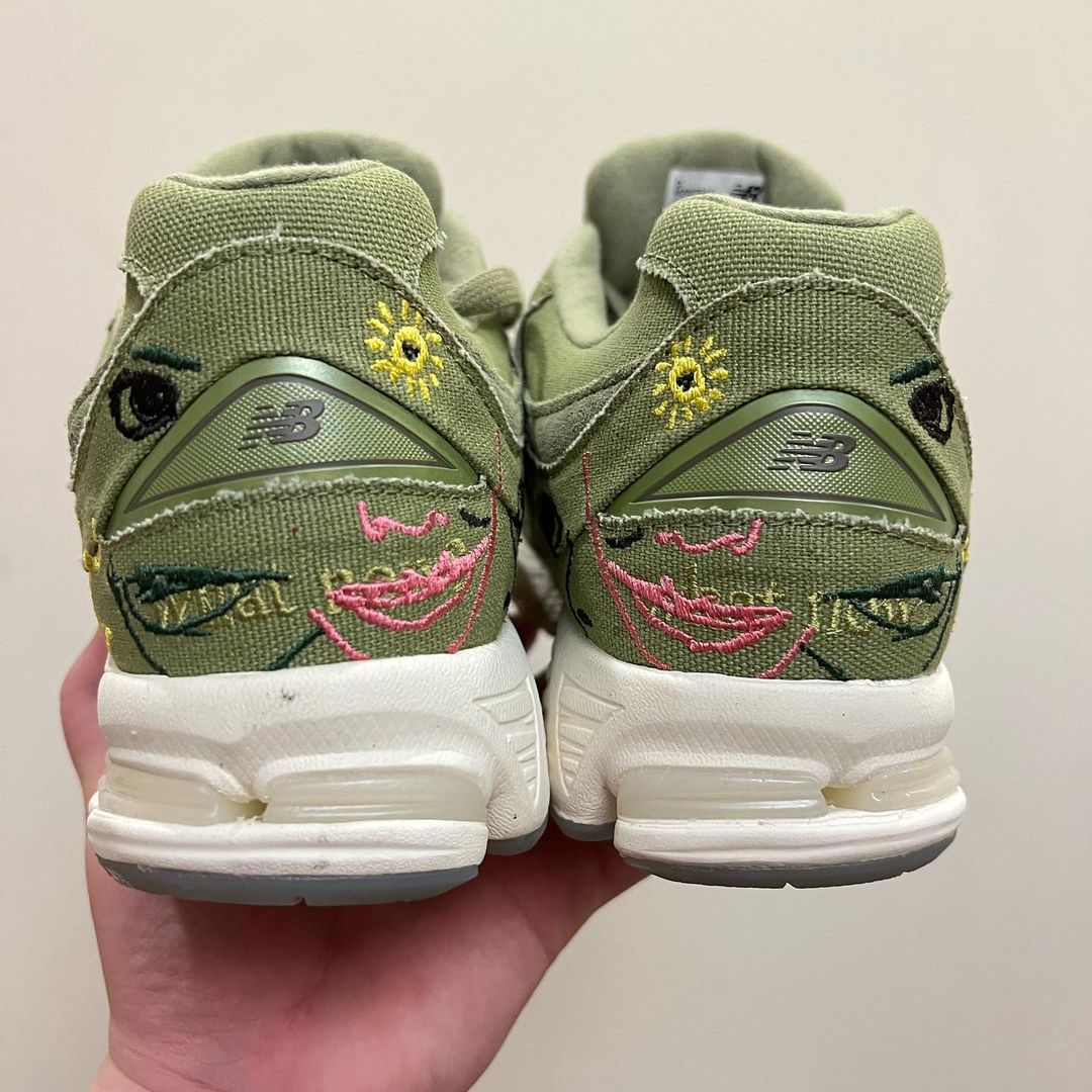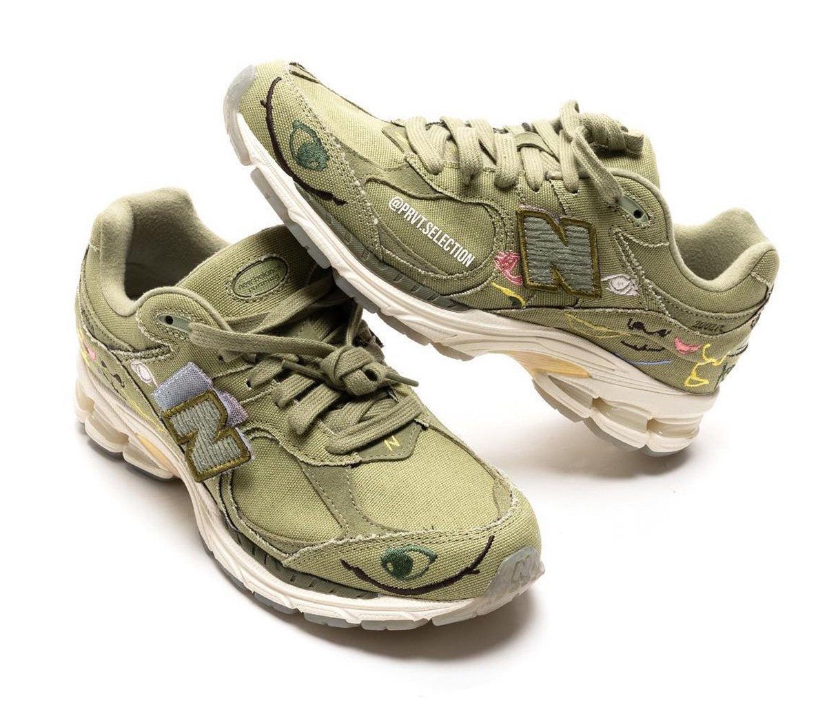 This New Balance 2002R comes with Olive Green canvas across the upper while embroidered artwork lands throughout. Next, we have โWhat Now?โ on the heels which is a tribute to Giles collection that launched in December during Art Basel in Miami. The โNโ logo on the lateral is velcro which can be removed while artwork is printed on the insoles to finish the look.