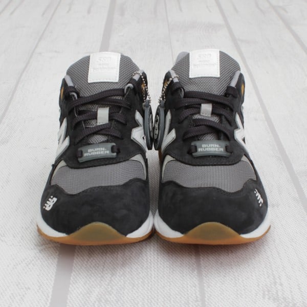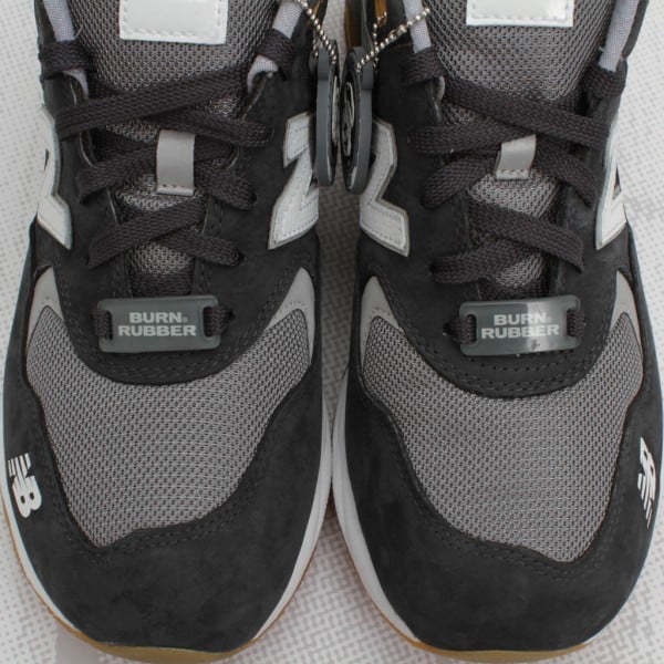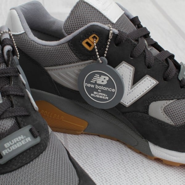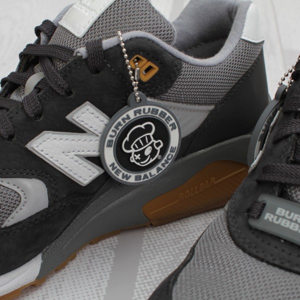 Utilizing the MT580 as a canvas and Burn Rubber’s hometown of Detroit as inspiration, the “Blue Collar” kicks feature a grey mesh and suede upper alongside a gum sole and orange accents on the Rollbar and top eyelets. Special Burn Rubber lace jewels, insoles, and a hang tag complete the special package.