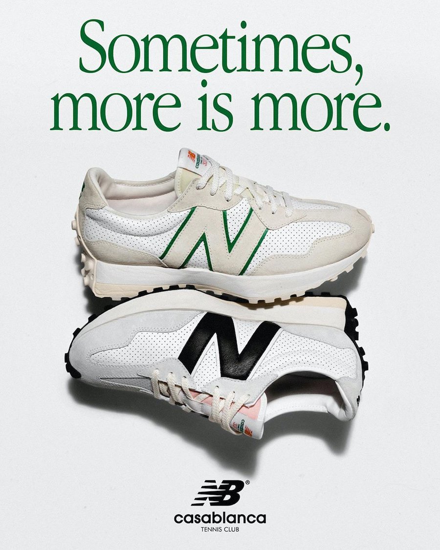 Continue to scroll below to check out more images of the two Casablanca x New Balance 327 color options, which will give you a closer look. You can expect the two to launch globally on April 18th. The retail price is $150.